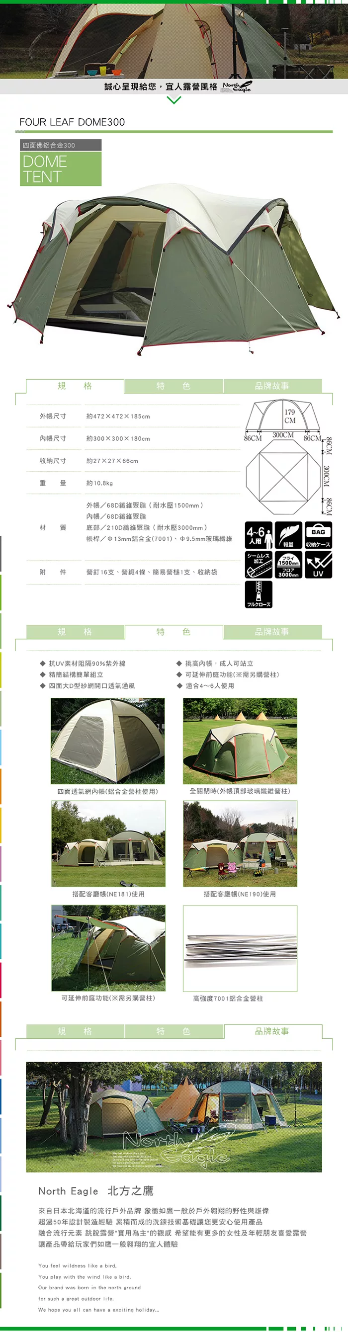 商品推薦:【日本North Eagle】四面佛鋁合金300帳#NE170